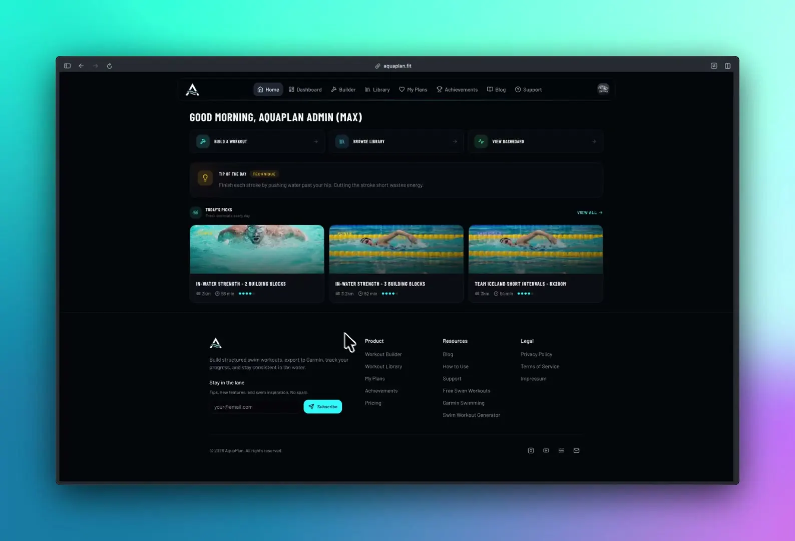 Create your free AquaPlan account. Access 130+ swim workouts, build custom training plans, and export to Garmin. No credit card required.